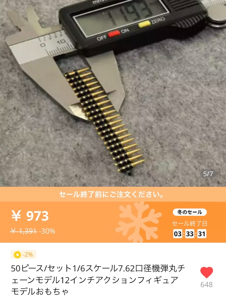 本来弾丸は腕の中に格納されているかと思うけど、マシンガンのように垂らして見ようと思い探していたら1/6フィギュア?ようの弾帯を見つけサイズ的にまぁまぁ合いそうかなぁ〜っと購入。